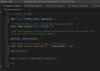 Screenshot einer PHP-Datei in Visual Studio Code mit einem aktivierten PHP CS Fixer zur Formatierung und Bereinigung des Codes.
