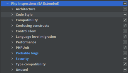 - Wählen Sie unter „PHP“ das Plugin aus und passen Sie die verfügbaren Inspektionen an Ihre Anforderungen an.