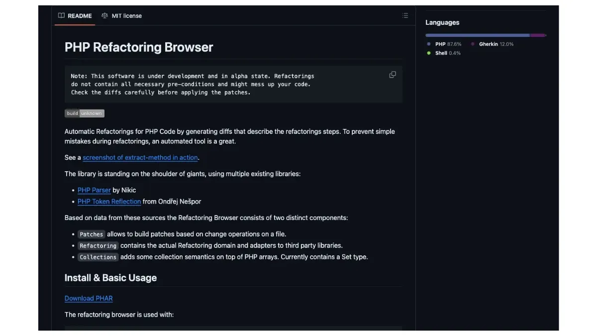 Der PHP Refactoring Browser ist ein Tool zur statischen Analyse, das Refactoring-Empfehlungen für PHP-Code bereitstellt, um dessen Lesbarkeit, Wartbarkeit und Performance zu verbessern.
