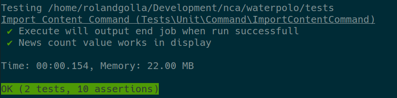 Windows Powershell Terminal PHPUnit Run Result grün ok
